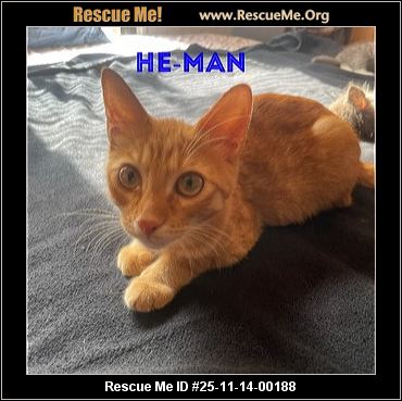 He-Man is a rescue kitten born around June 25th, 2025, making him 4.5 months old at the time of posting. He is a
