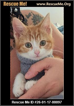 This adorable kitten is Rosie. She is 2-months-old and weighs 3 lb. She has a soft shorthaired orange and white