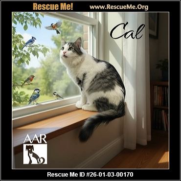 Cal is a sweet, young adult cat. He likes to play with little toy balls that have a bell inside. When he is tired