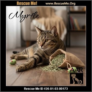Myrtle is a sweet, timid, young adult cat. She gets along with other cats if they are not intimidating. She likes