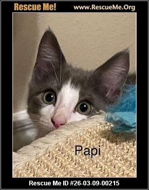 Papi is a sweet kitten that loves being petted and climbing to the highest spot in a room. He is okay being held